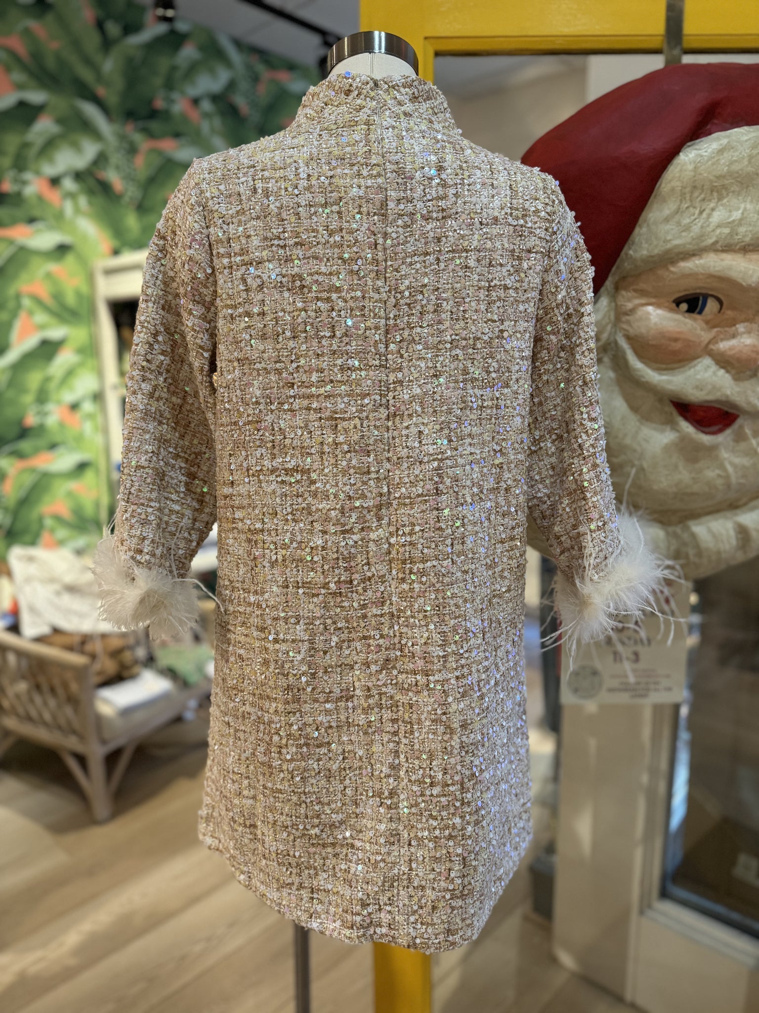 Zip back details with iridescent sequins.