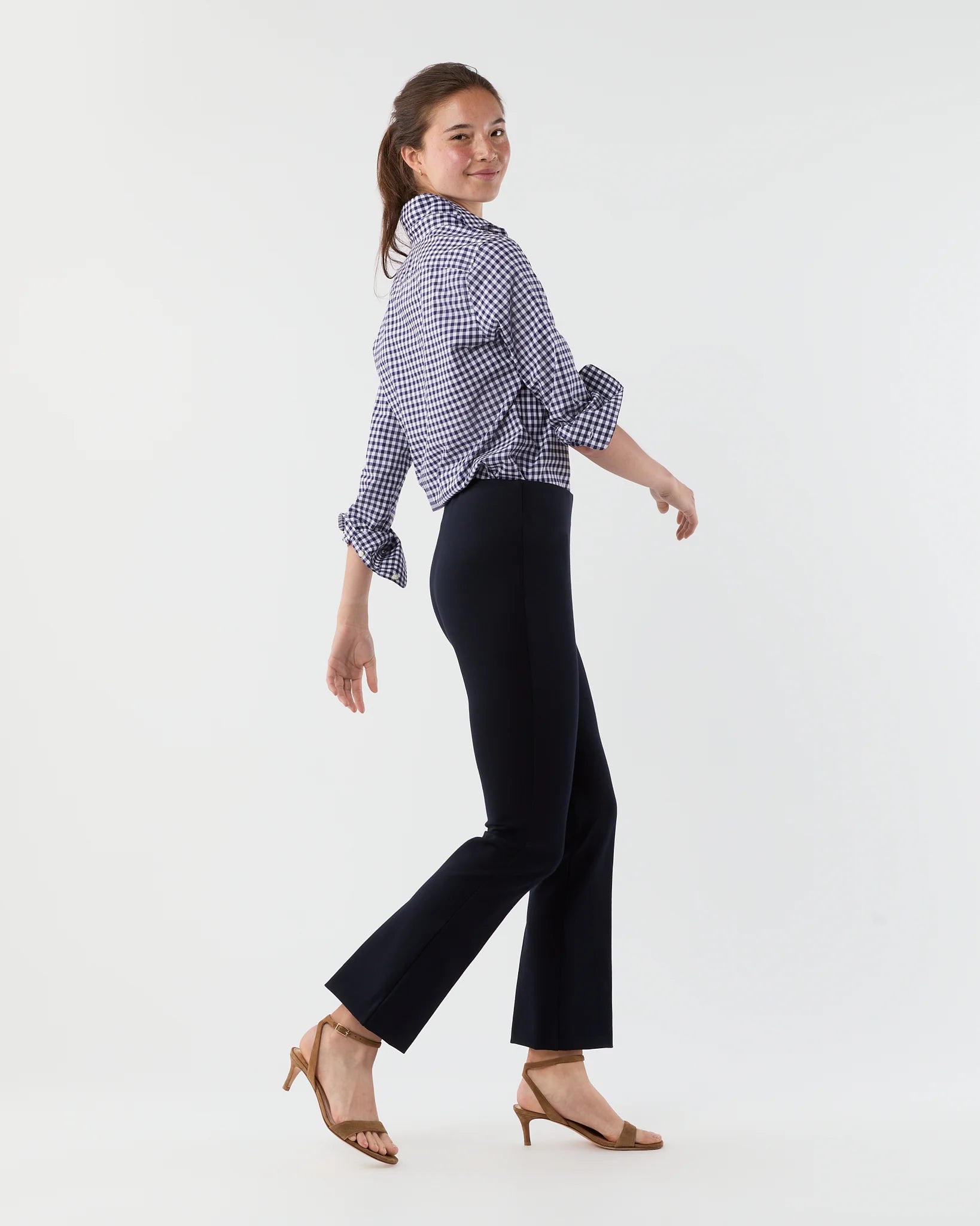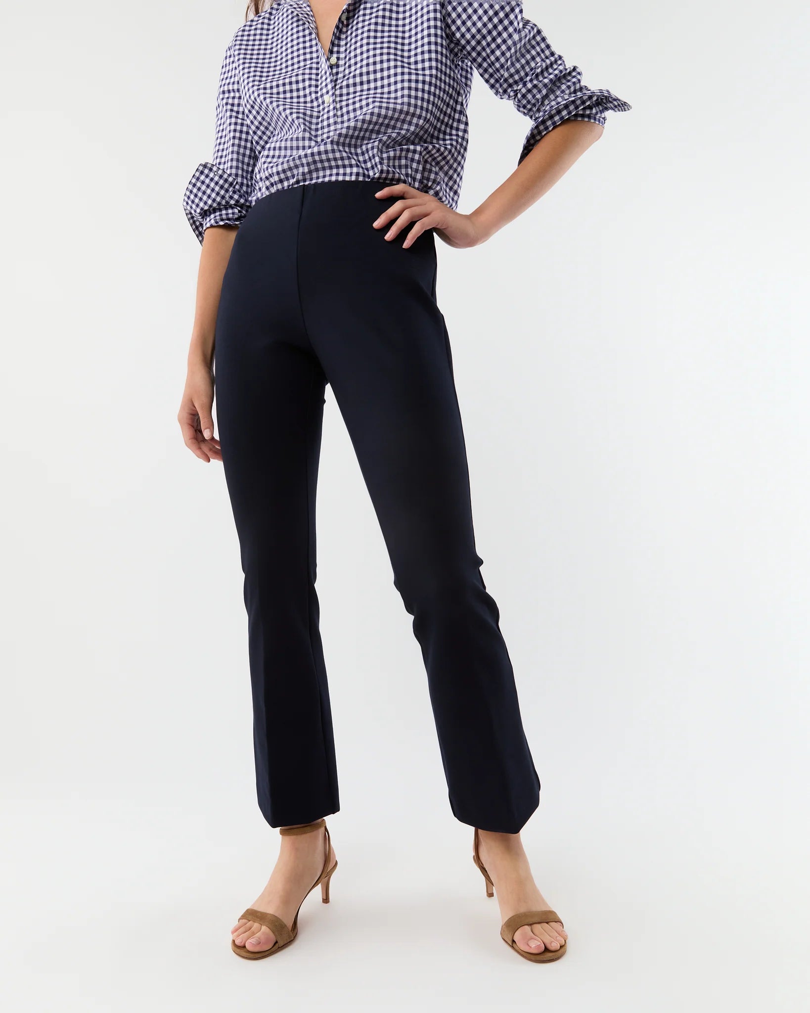 Minimal, clean, and quietly chic: our Faye shape is a refined pant without all the fuss. It just pulls on, with an elastic waist that doesn't scream “elastic waist” and a kick flare that's cropped to an above-the-ankle length. This particular pair is our go-to, made of a lush, stretchy ponte knit that holds you in a bit and feels really good against the skin. Add a sweater and a scarf for an instant plane (or anywhere else) outfit.