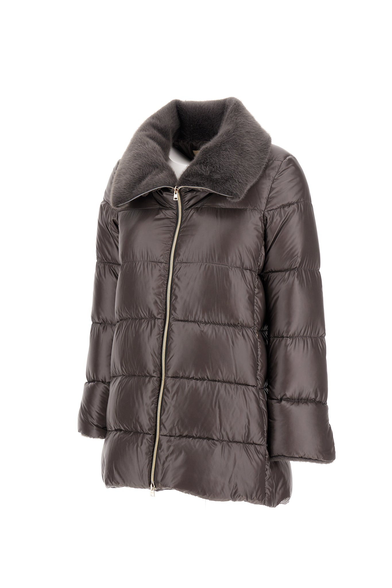 Herno A-Shape Jacket In Nylon & Lady Alternative Fur | Charcoal