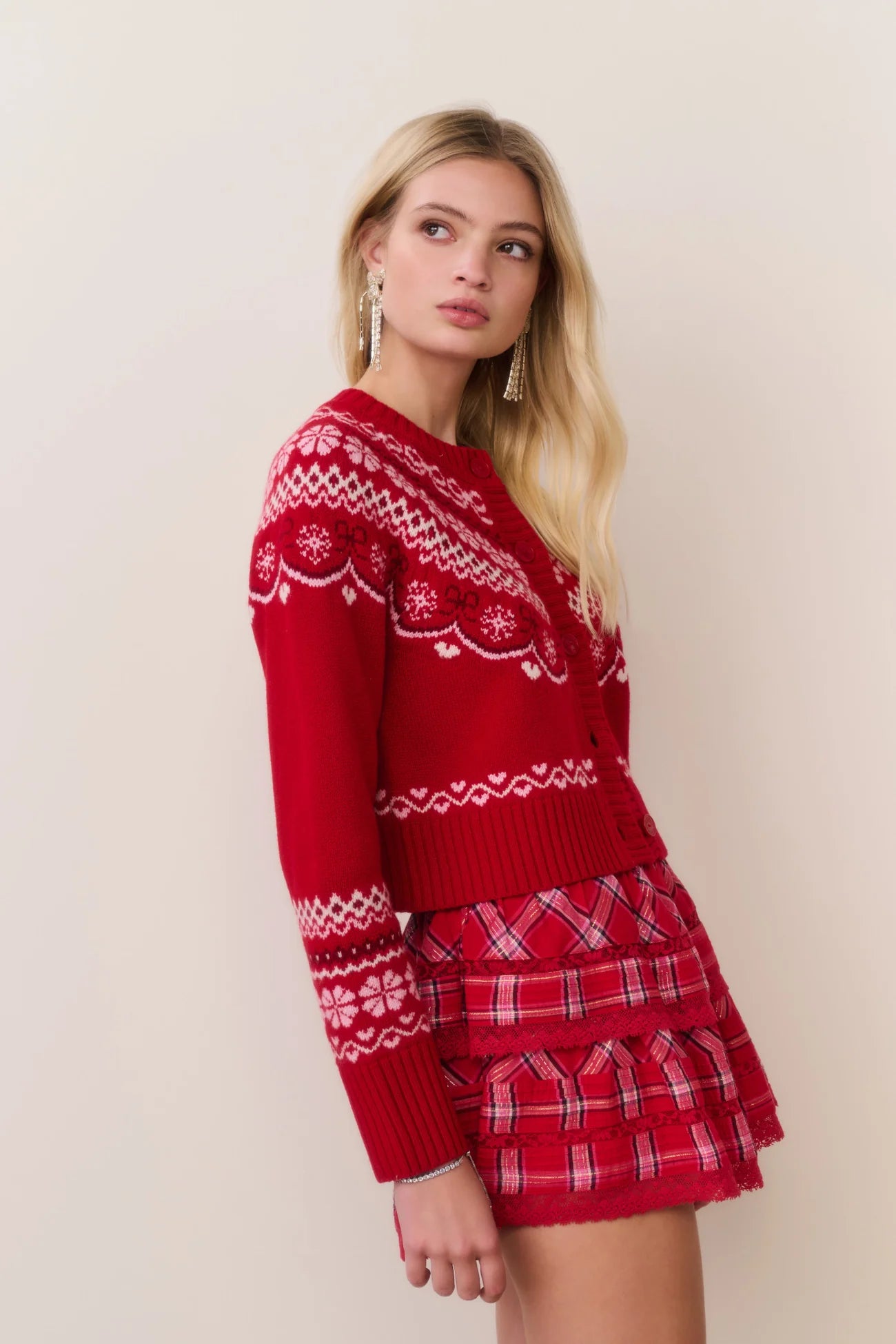Loveshackfancy Shantae Wool Fair Isle Cardigan | Red Velvet Truffle