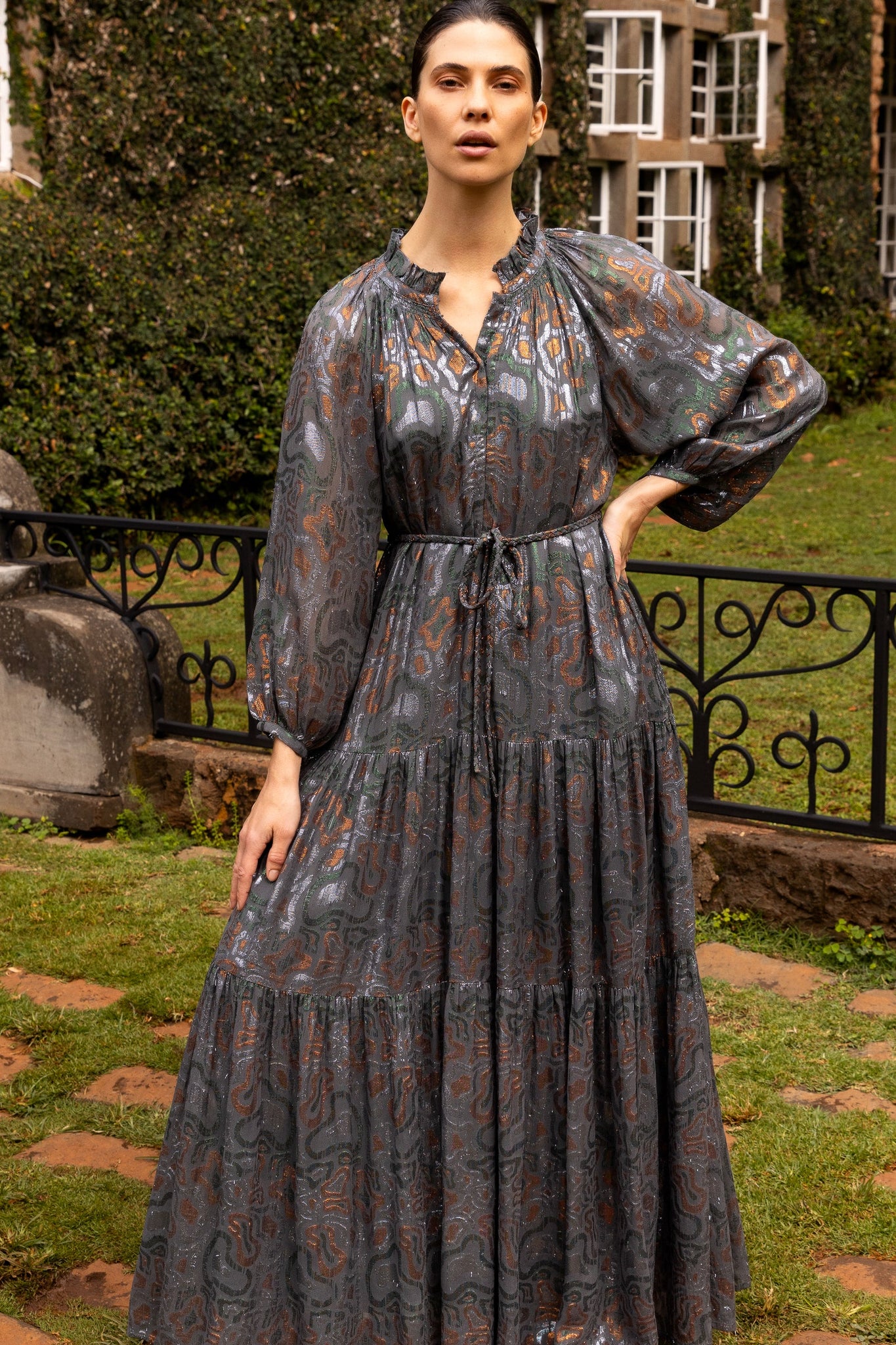 Oliphant Cuff Sleeve Tie Waist Maxi | Kenzo Charcoal