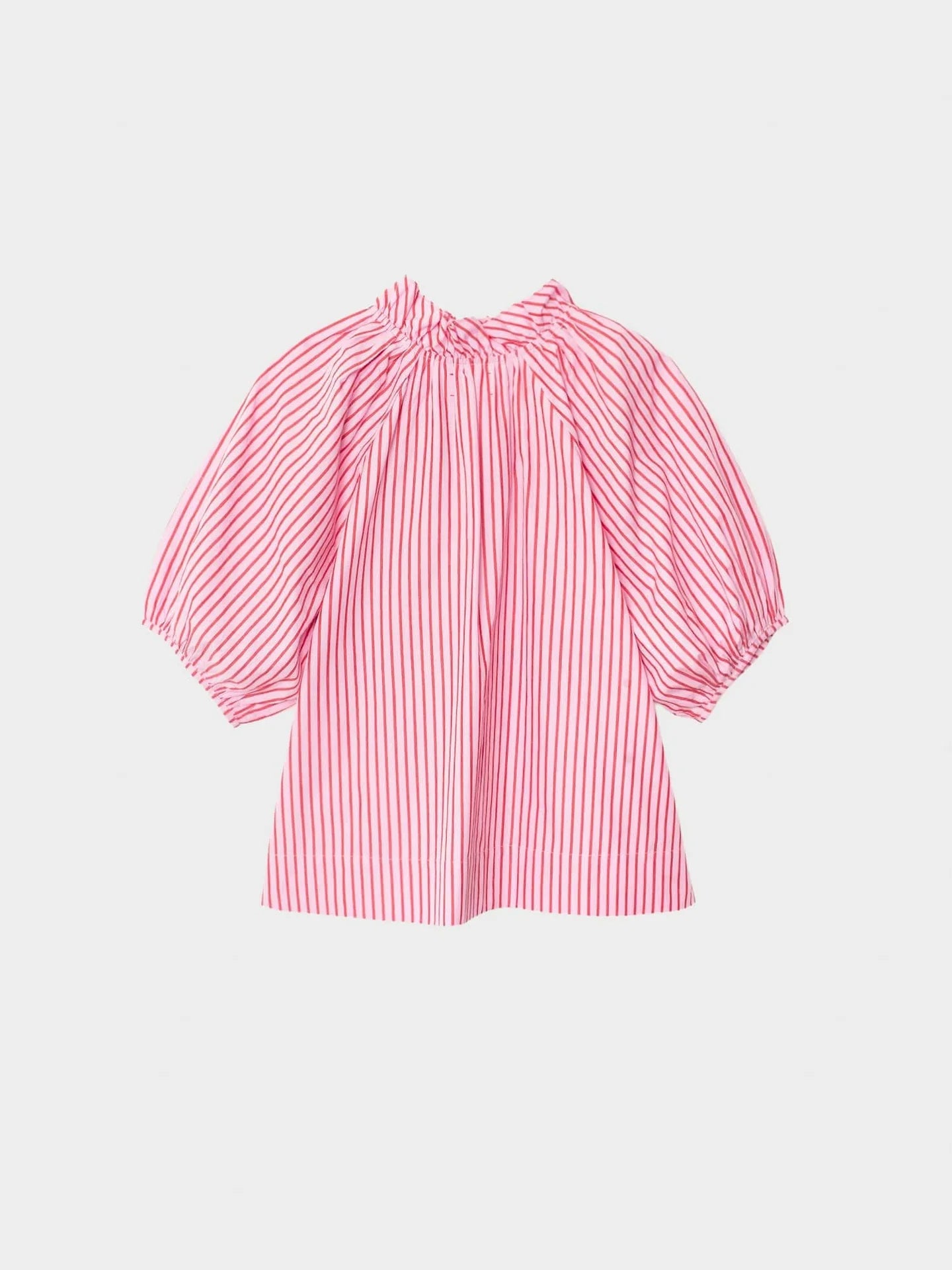 Striped Delight. Clementine is new this season in our crisp multicolor stripe cotton. Clementine is a femme blouse featuring a deep V-neck with ruffle detailing and shirred puff sleeves.