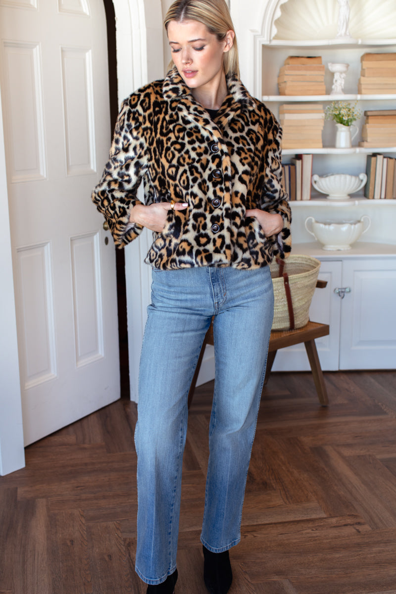 A statement jacket that keeps you warm and chic on a cold day. Bring on the leopard with this piece and elevate your look with ease. - Modacrylic fur with poly lining - Button front closure - Pockets - Fits true to size