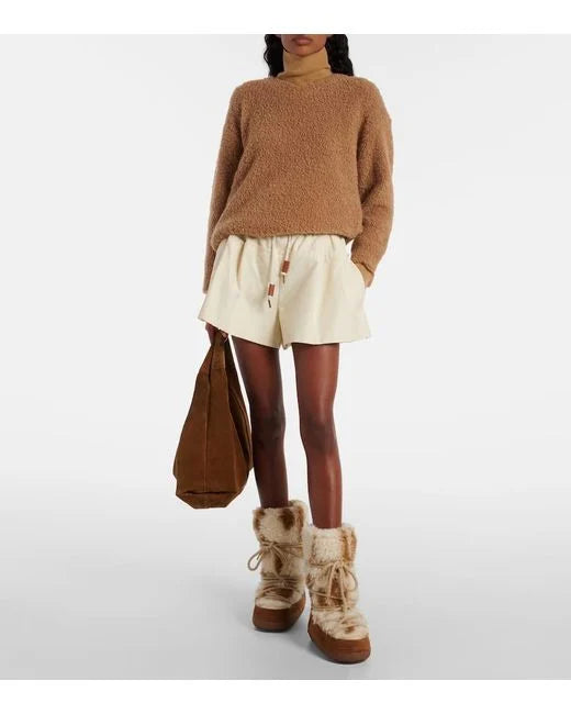 A fuzzy, extra-cozy interpretation of Inuikii's classic boots, this pair of snow boots features a textured, patterned upper, suede details, wool lining, and thick lace closure for an adjustable style, made for cold days and warm campfires.